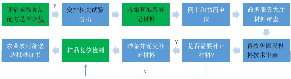 申报流程图宠物食品配方要求宠物食品禁止使用《饲料原料目录》和《饲料添加剂品种目录》以外的任何物质。使用饲料添加剂的,应当遵守《饲料添加剂品种目录》《饲料添加剂安全使用规范》等限制性规定。