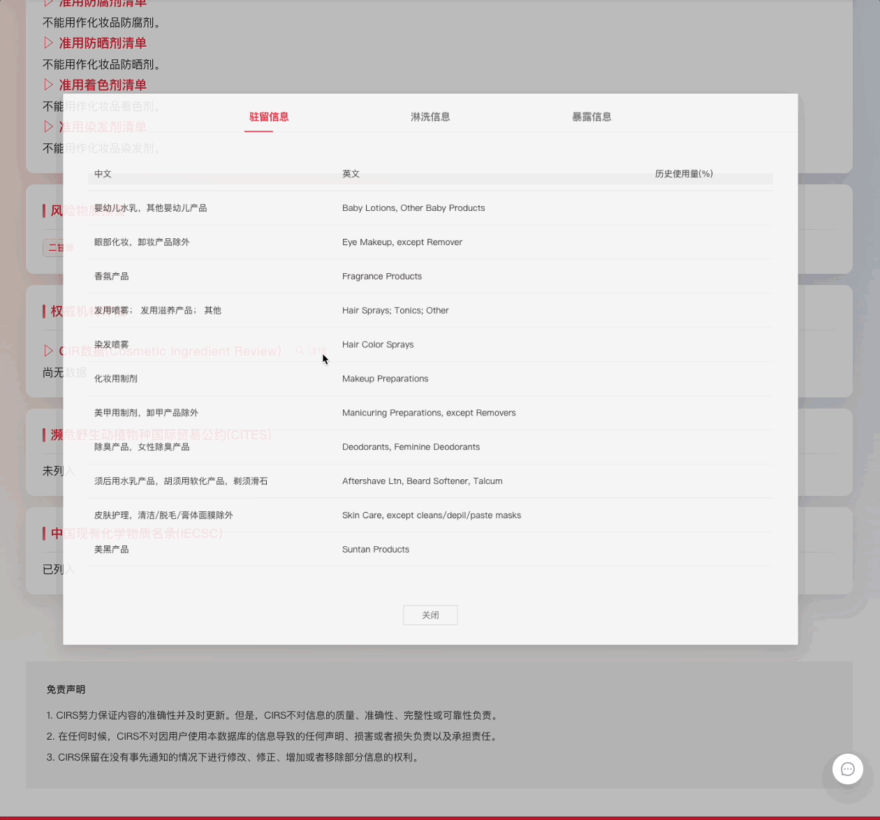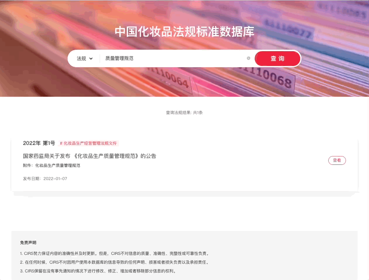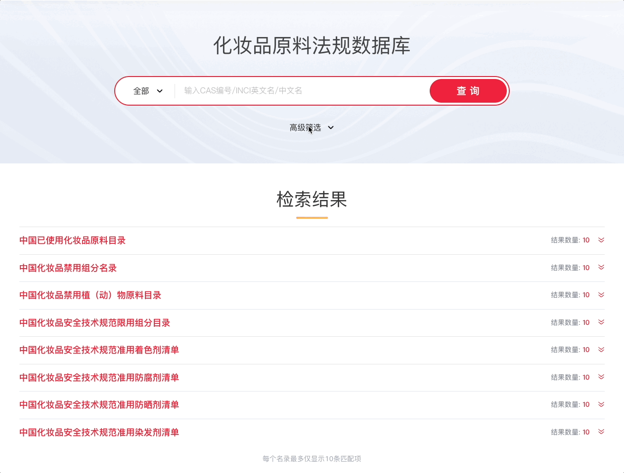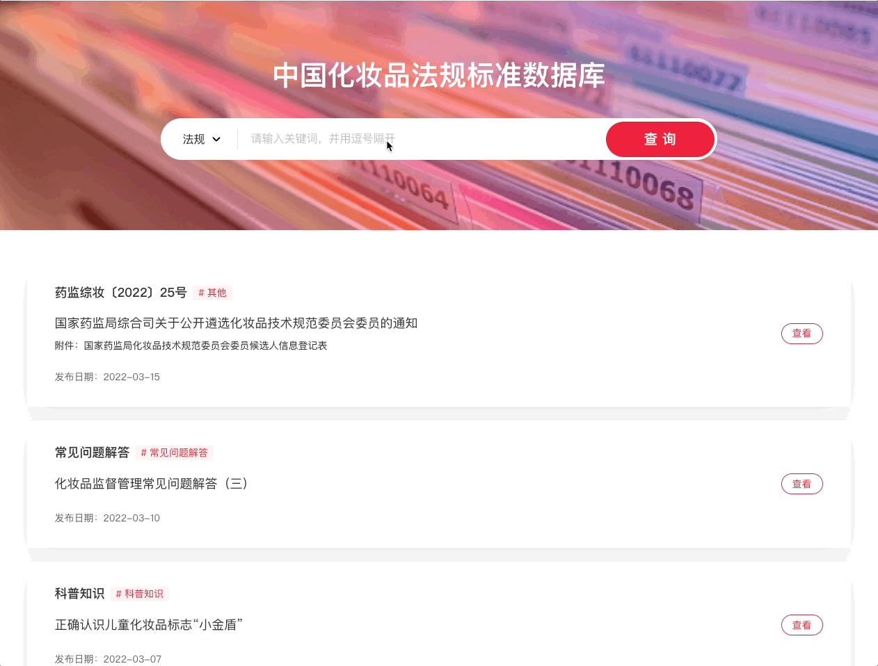 Information query in China cosmetic regulations and standards database